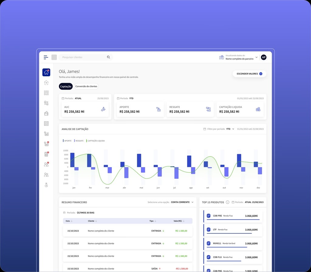 O projeto otimizou o uso do CRM para assessores de investimentos, criando uma solução mais intuitiva que o HubSpot, com foco em pipelines, tarefas e gestão de carteira.